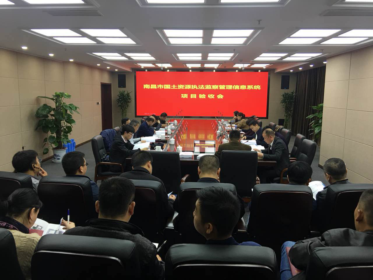 近年来,南昌市认真贯彻落实党中央、国务院关于严格土地管理和加强土地调控的各项政策,不断加大土地执法力度,在遏制违法违规占用土地方面取得了显著效果,为进一步遏制土地违法违规行为,启动了南京舜智公司研发的国土资源执法监察管理信息系统,该系统利用先进的计算机技术、移动互联网络技术、3S与4G技术等手段对土地利用情况进行监管监控。通过与“天上看、地上查、网上管”的3S一体化技术有机结合,及时发现、及时处理、有效遏制土地违法行为,从而最大限度地发现和制止违法用地,将违法现象遏制在萌芽状态,充分的保护耕地,为保住 18 亿亩耕地这个“红线”提供技术支撑。 会议开始由我公司从系统概述、系统架构、功能介绍、系统亮点等方面以PPT形式进行深入汇报讲解。同时向所有专家现场逐一演示了平台所有功能,展现了平台的先进性、前瞻性、实用性、可操作性、高效性等。 专家组听取了我公司的详细汇报,观看了系统演示,审查了相关资料。经讨论,专家组一致认为平台的建设达到了预期目的,运行效果显著,对平台项目的成果给予了高度评价,并强调了本次验收工作的重要性和意义,最终同意验收通过! ![]() 验收会现场 ![]() 专家组听取汇报