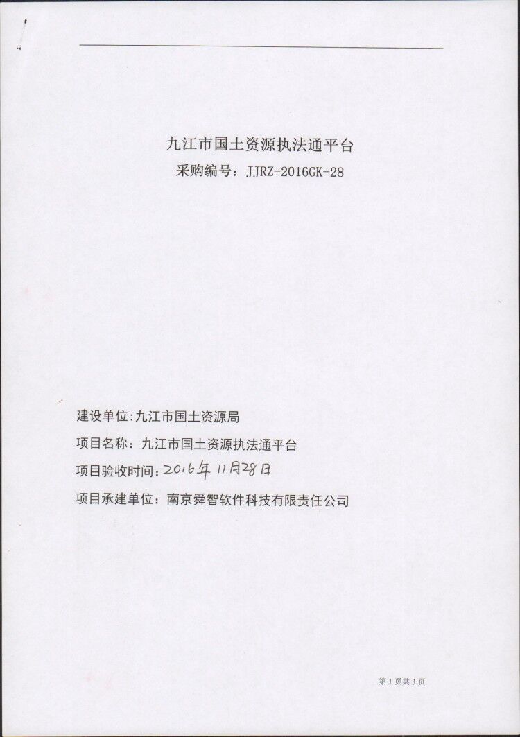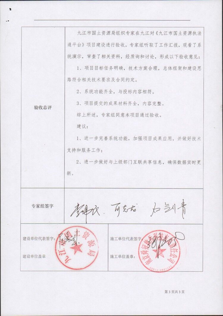 热烈祝贺九江市国土资源执法通平台验收顺利通过 |
