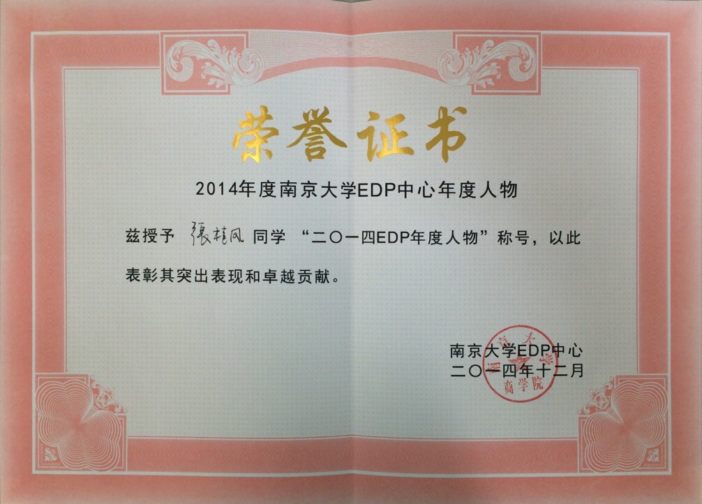 热烈祝贺张桂凤董事长荣获南大“二〇一四EDP年度人物”称号